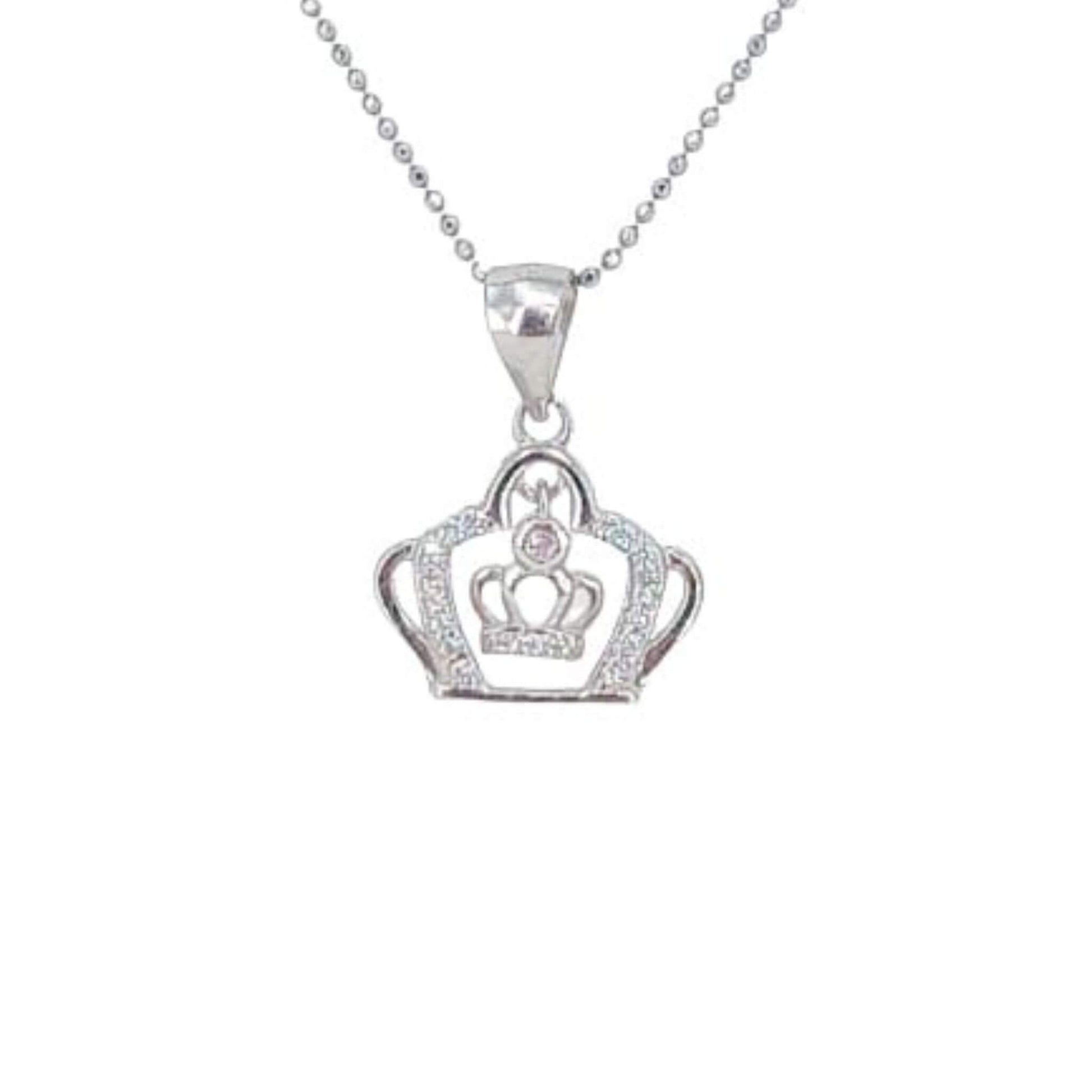 Este elegante colgante en forma de corona está hecho de plata 925 con un acabado en rodio. Mide 18 mm de largo y está adornado con circonitas blancas que le dan un toque de brillo sofisticado. Es un diseño unisex que puede complementar cualquier estilo, y la cadena opcional te permite personalizarlo a tu gusto.