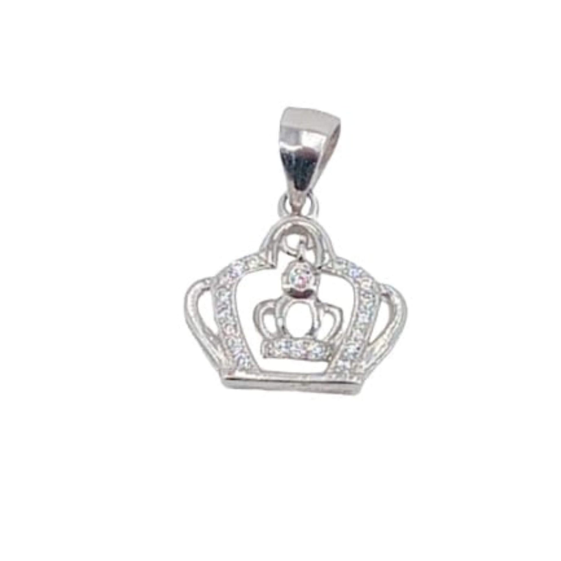 COLGANTE CORONA PLATA ACABADO EN RODIO Y CIRCONITAS