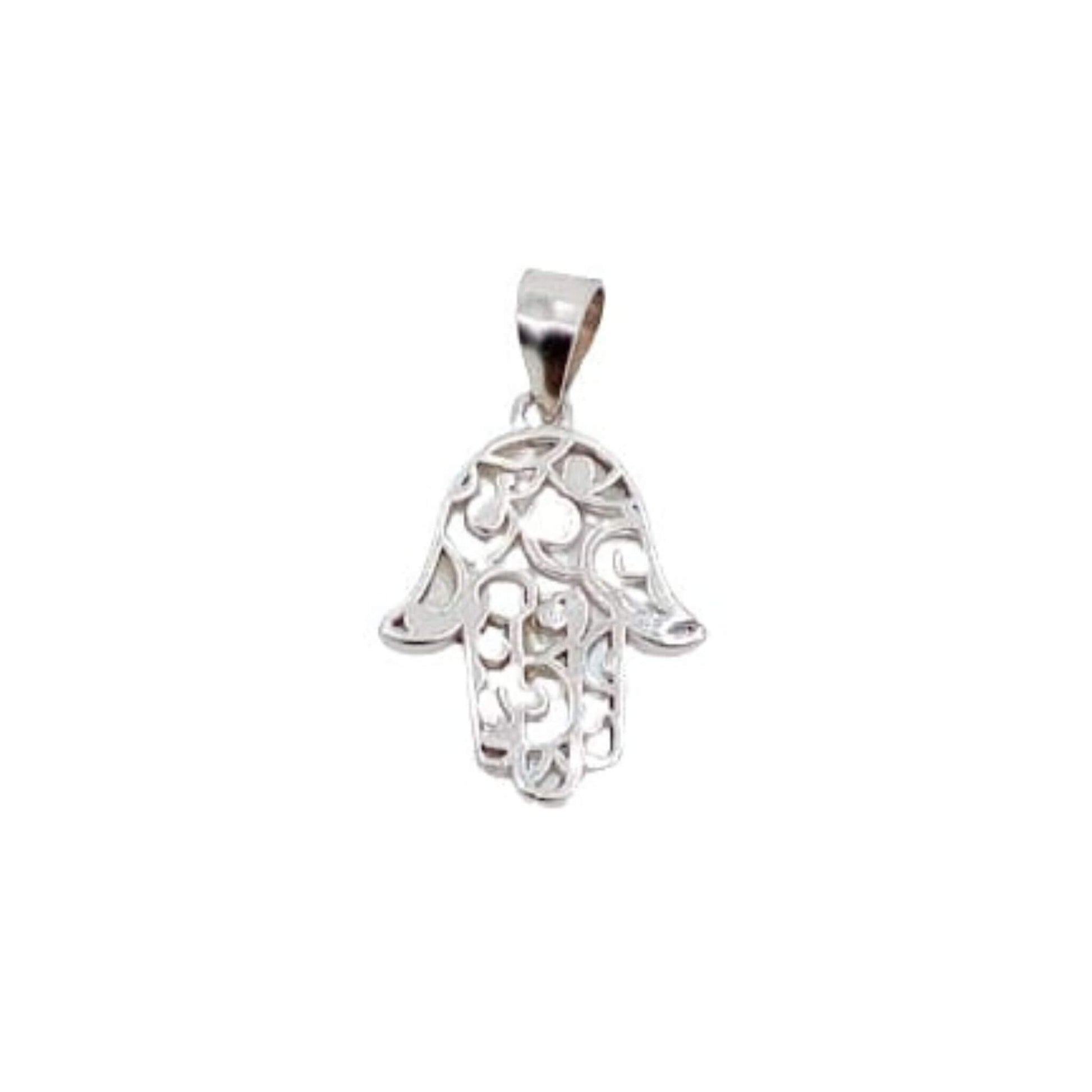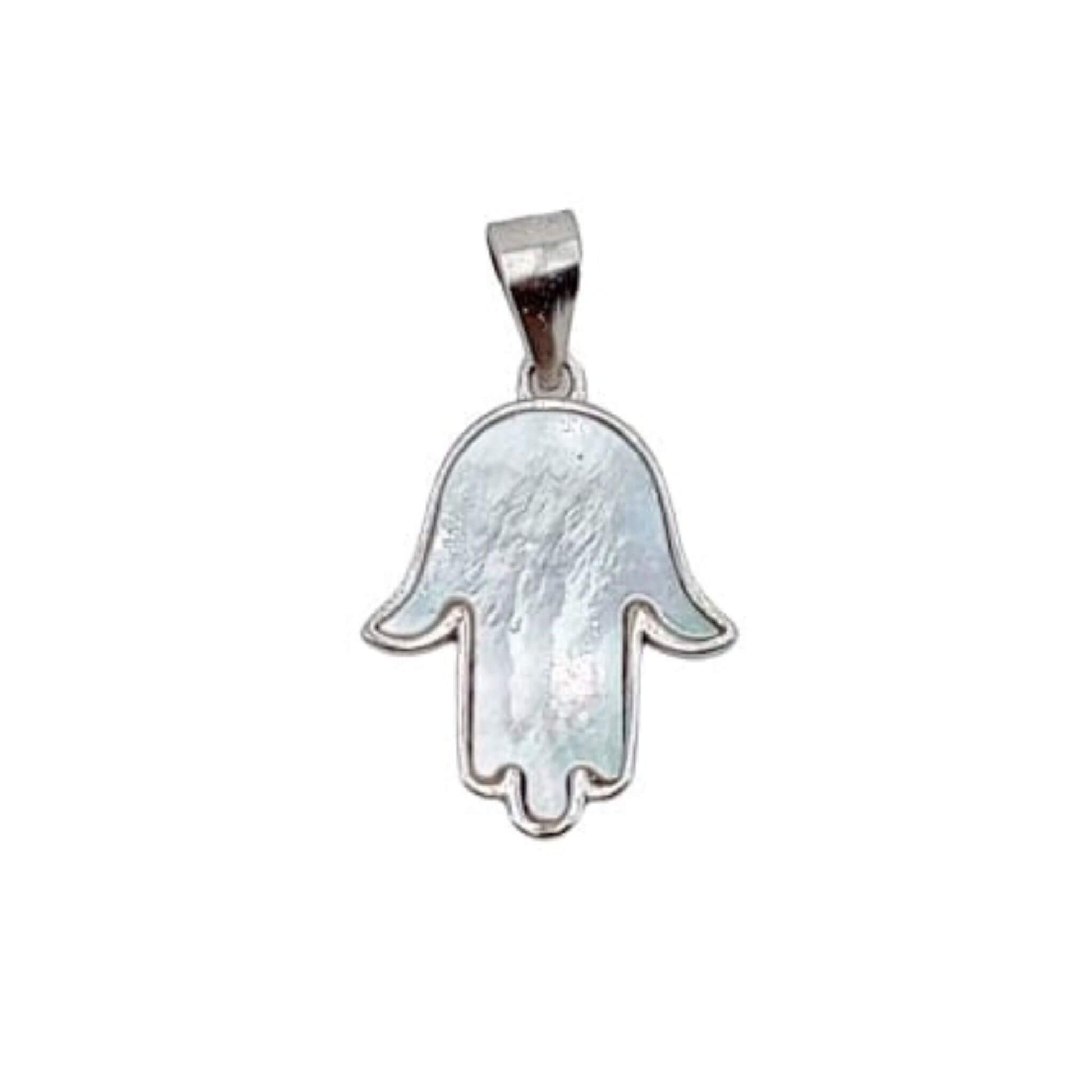 COLGANTE MANO PLATA Y NACAR ACABADO EN RODIO CALADO
