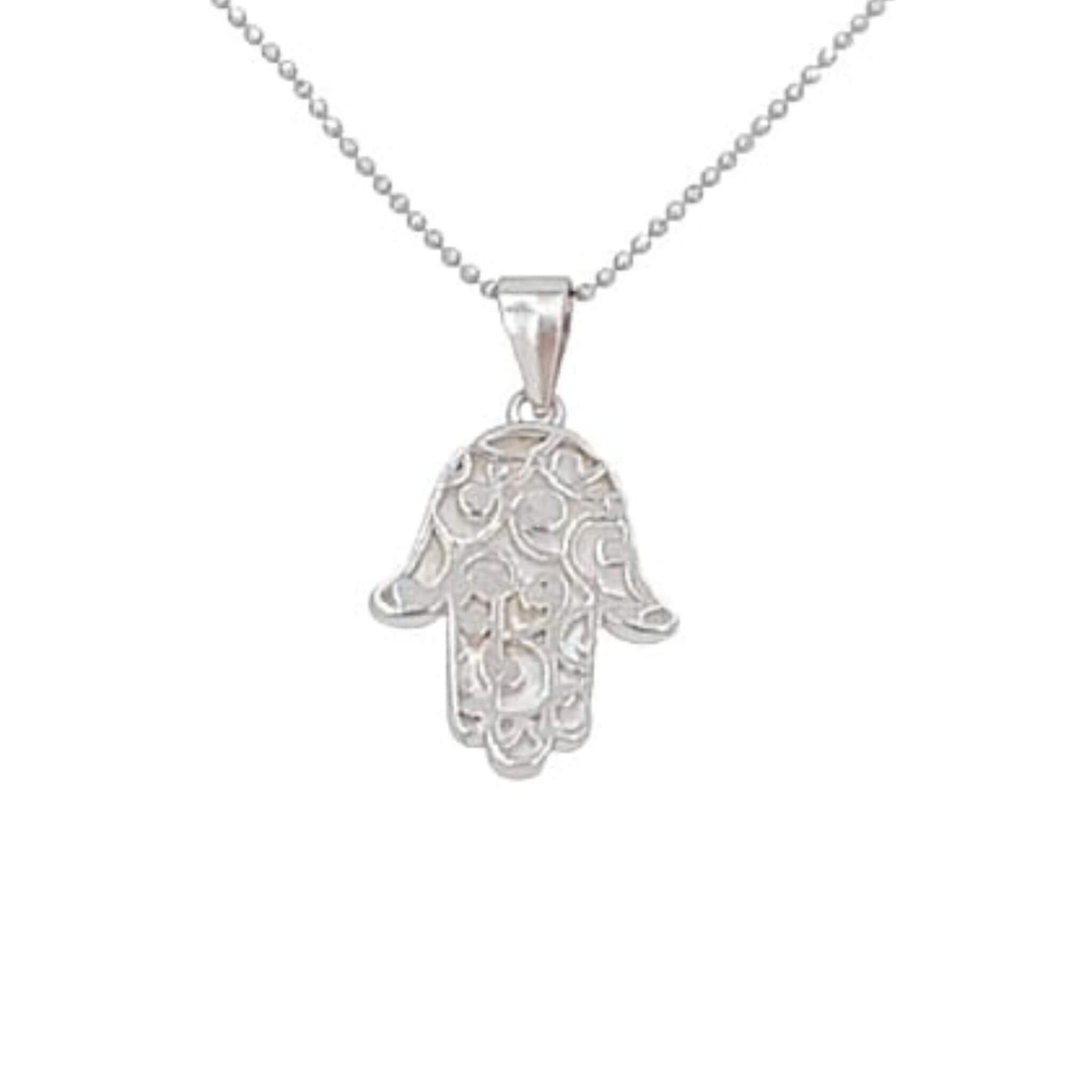 Este colgante de plata 925 presenta un diseño en forma de mano, con un elegante acabado en rodio. Un lado del colgante está adornado con nácar, mientras que el otro lado es calado, ofreciendo un estilo único y versátil. El colgante, de 22 mm de largo, es liso y brillante, adecuado para uso unisex. La cadena es opcional, permitiendo adaptarlo a tu gusto.