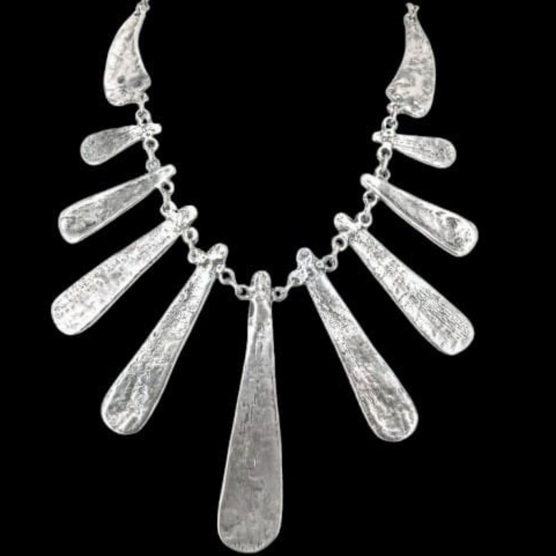 Destaca con este espectacular collar de diseño contemporáneo que combina elegancia y personalidad. Sus colgantes geométricos en cascada crean un efecto visual impactante que se convierte en el centro de atención de cualquier look.