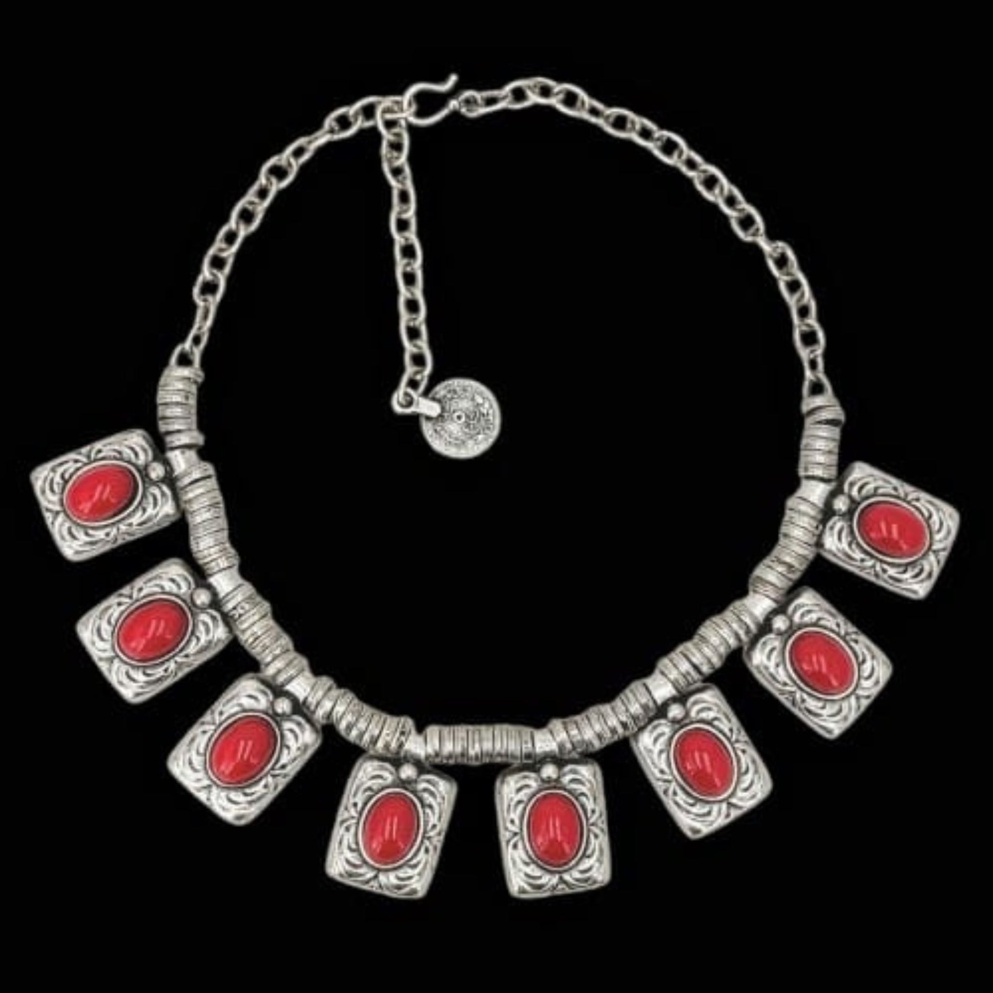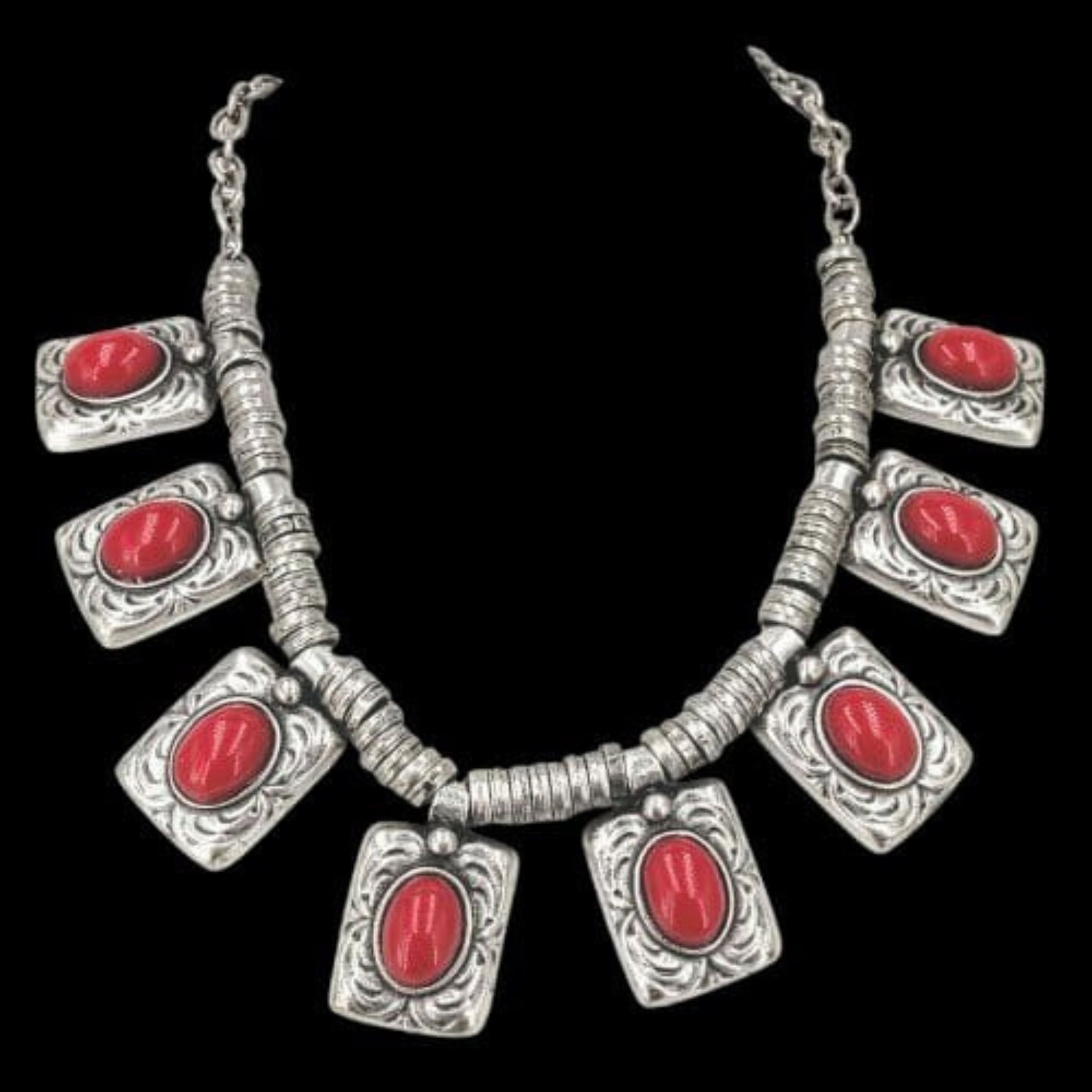 ✨Enamórate de este elegante collar que fusiona la belleza del coral rojo con el diseño en plata. Sus medallones cuadrados con incrustaciones de coral crean un look sofisticado y lleno de personalidad.