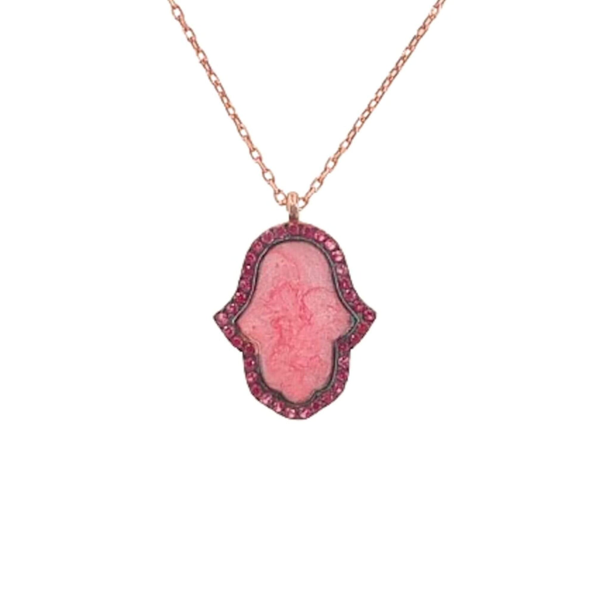 Este collar de plata con acabado en rosa y un colgante en forma de mano es una joya femenina y única, perfecta para mujeres que buscan un accesorio con significado y estilo. A continuación, te detallo sus características: