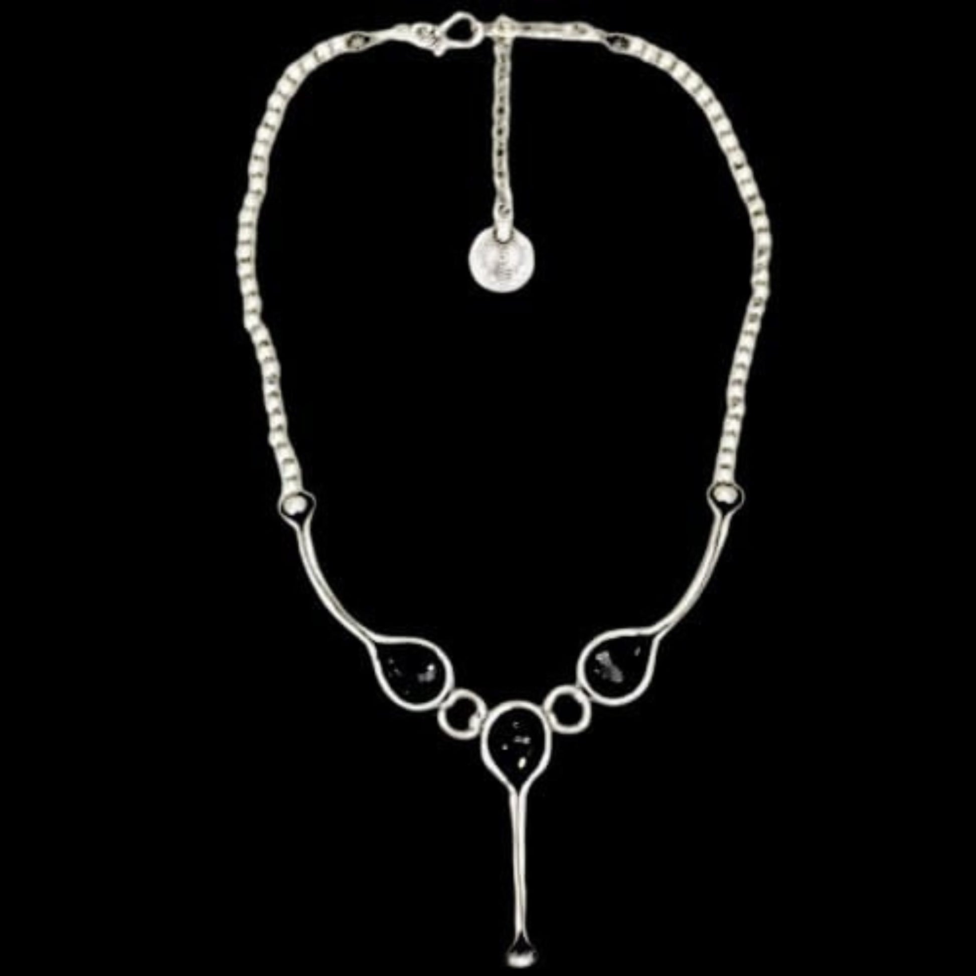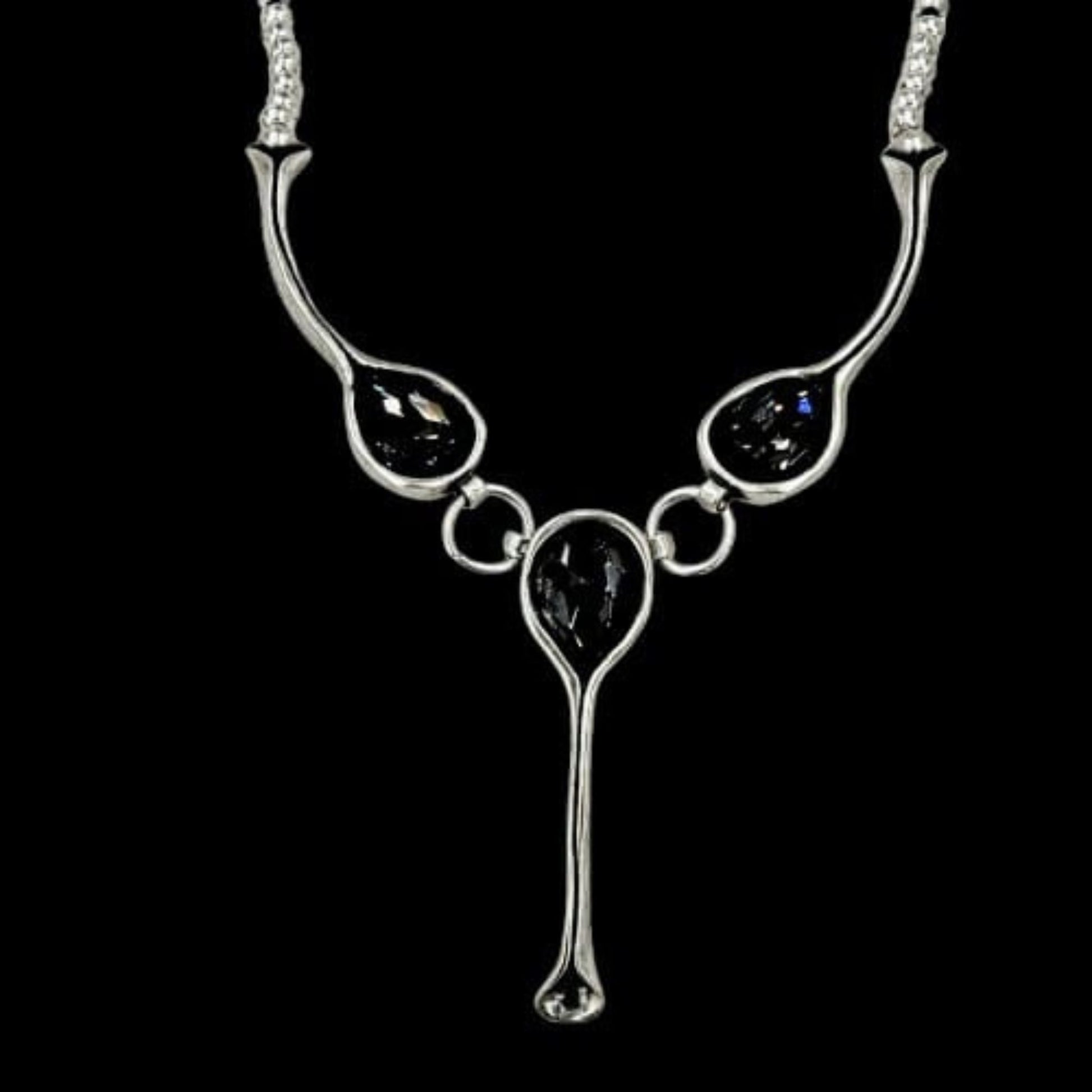 Collar ZAMAK Geométrico con Piedras Negras - Diseño Moderno en Y