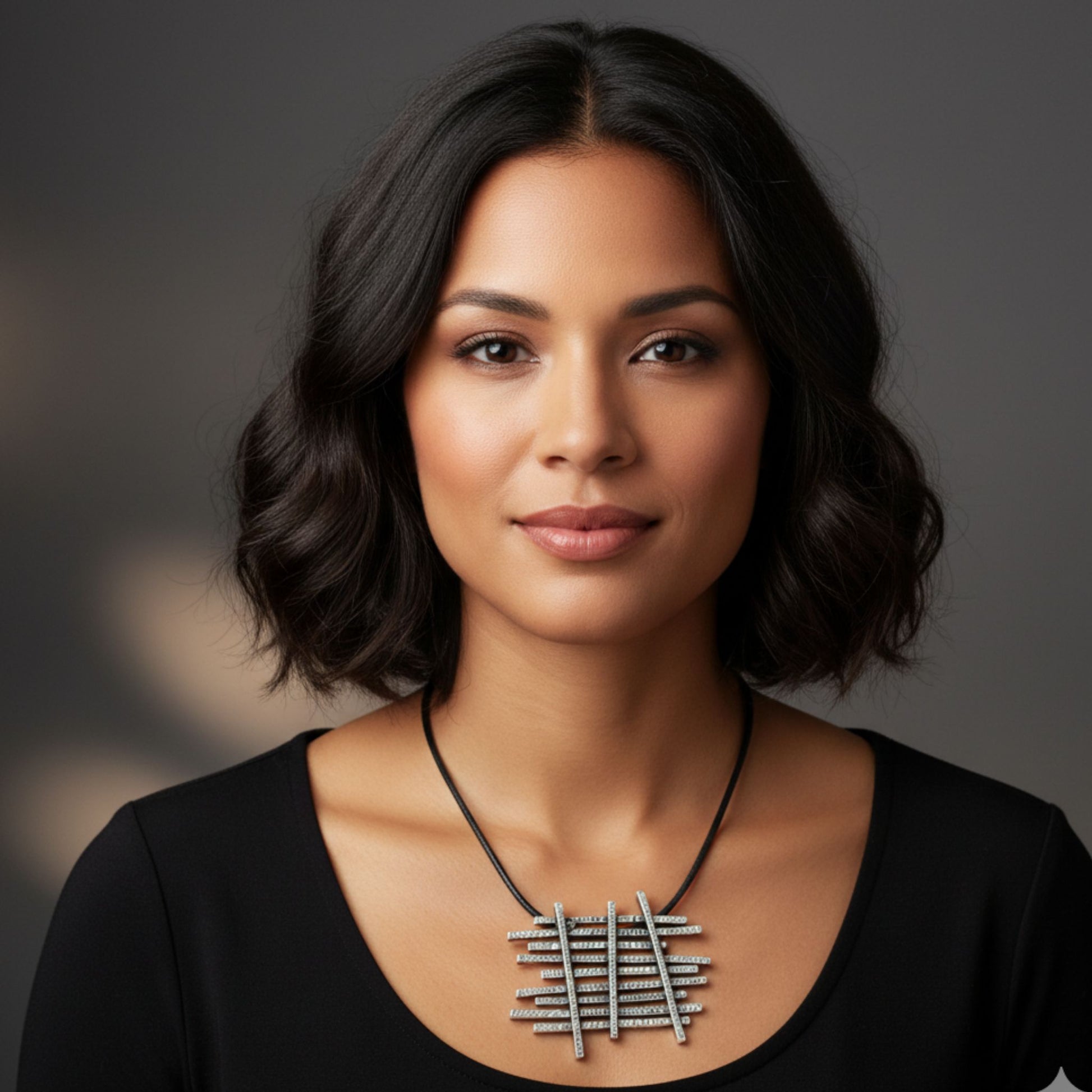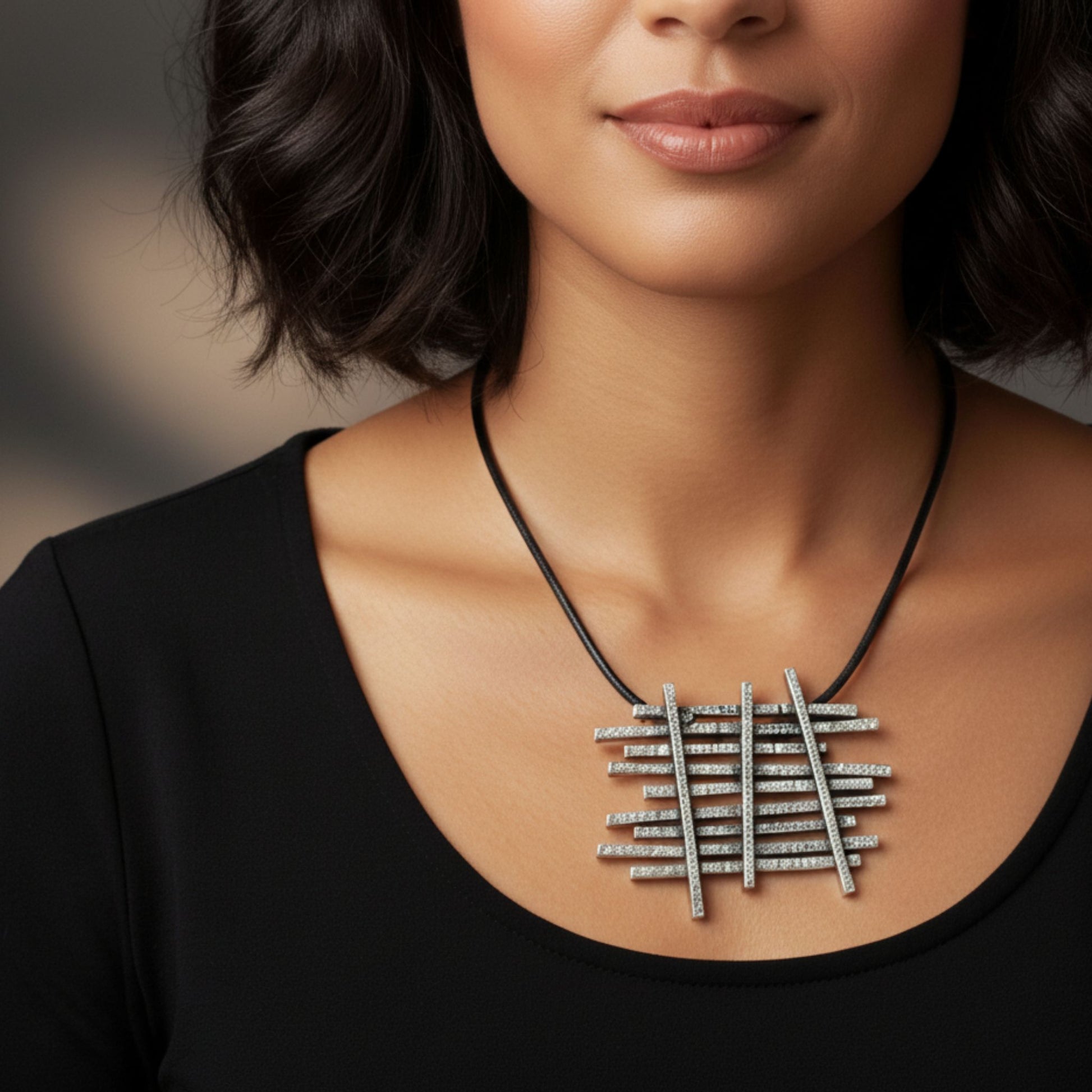 ✨ Este Collar Zamak con diseño geométrico arquitectónico es la pieza que redefine tu estilo. Colgante de gran formato (80x90mm) con líneas estructurales que crean un efecto visual impactante. con estilo contemporáneo y vanguardista.