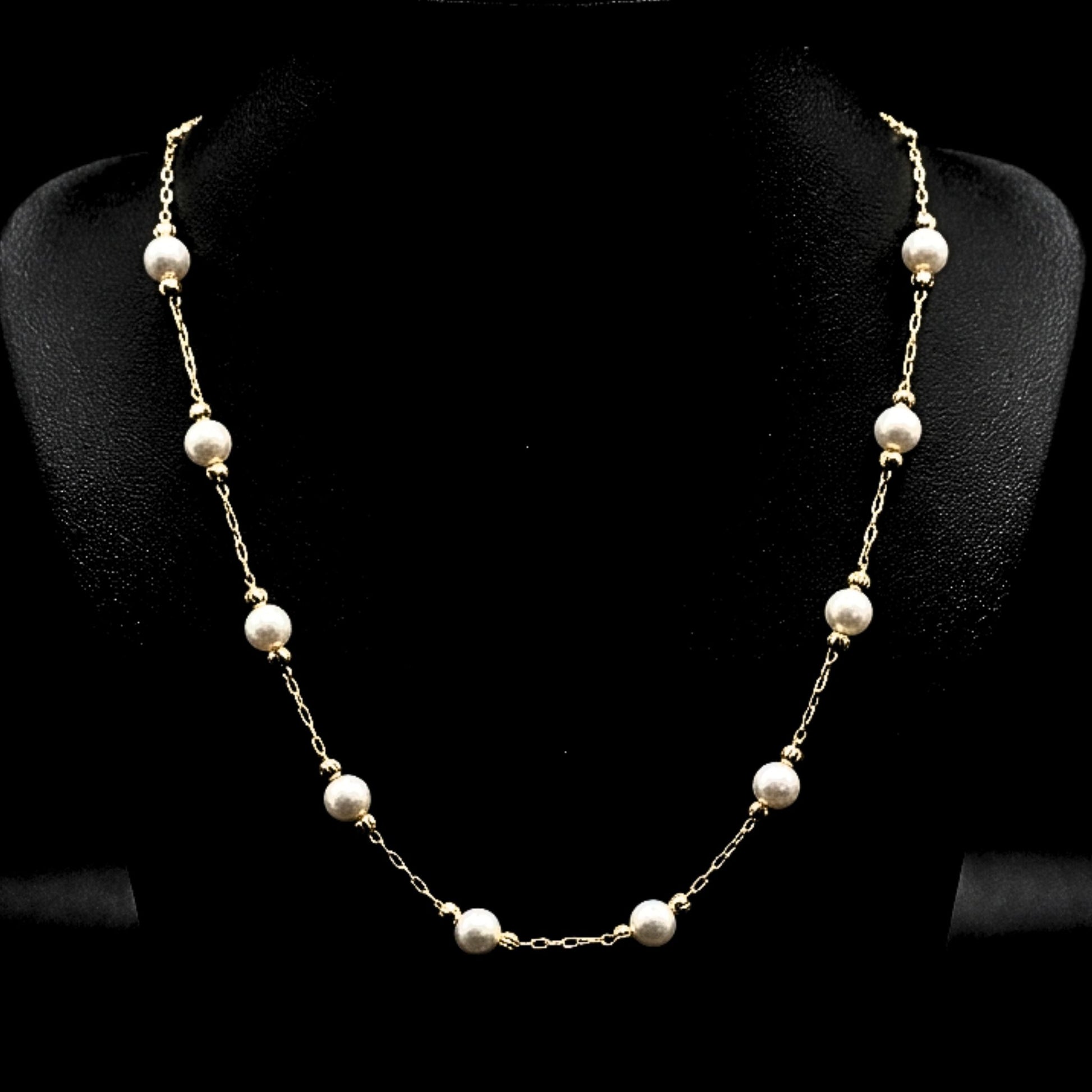 Gargantilla Cadena de Perlas · Acero Chapado Oro 14K