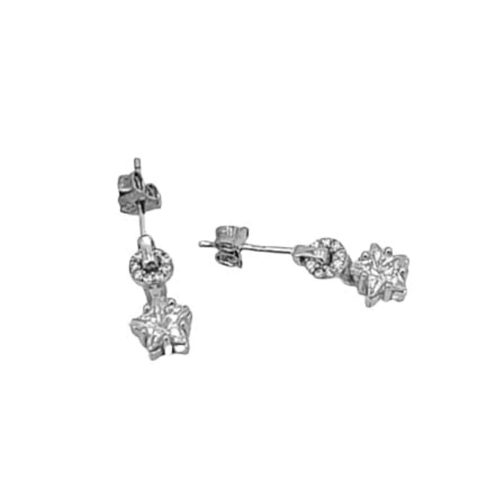 PENDIENTES ESTRELLA PLATA ACABADO RODIO CIRCONITAS CIERRE PRESION