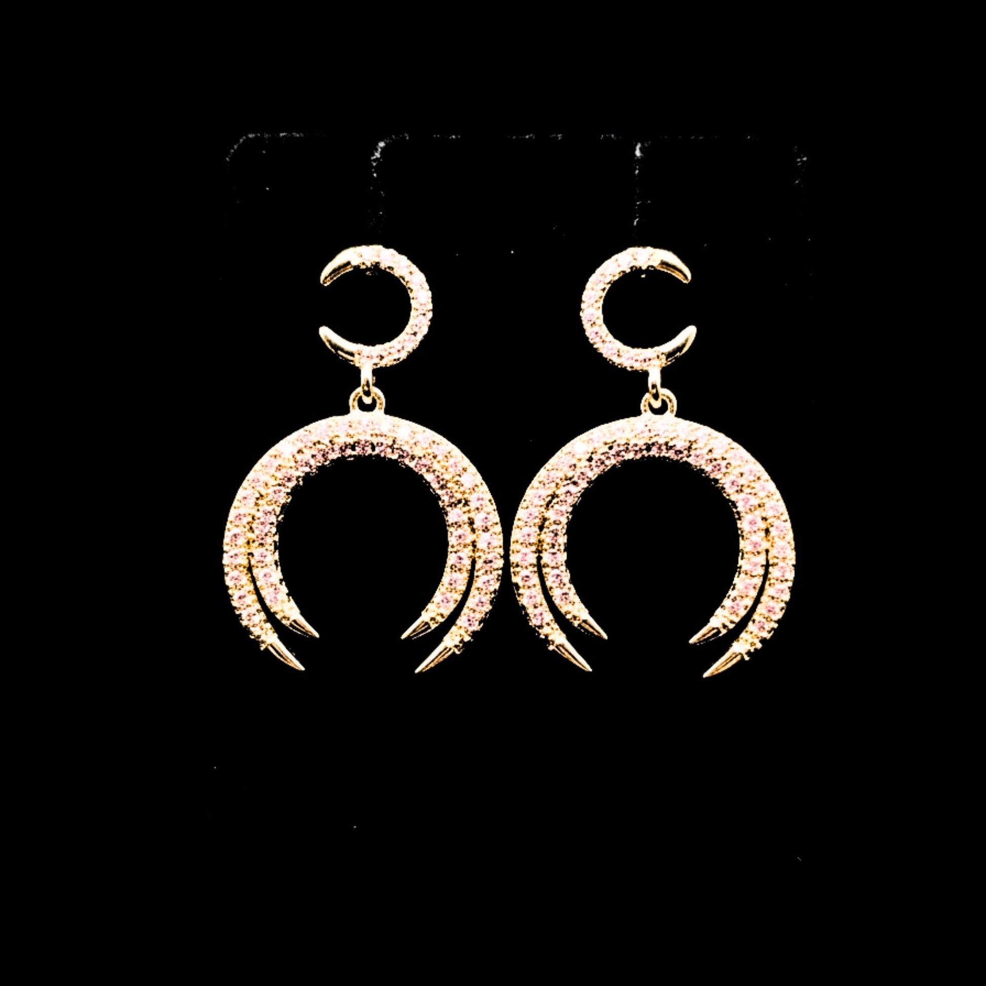 Pendientes Luna Doble | Circonitas Engastadas Acero Chapado Oro