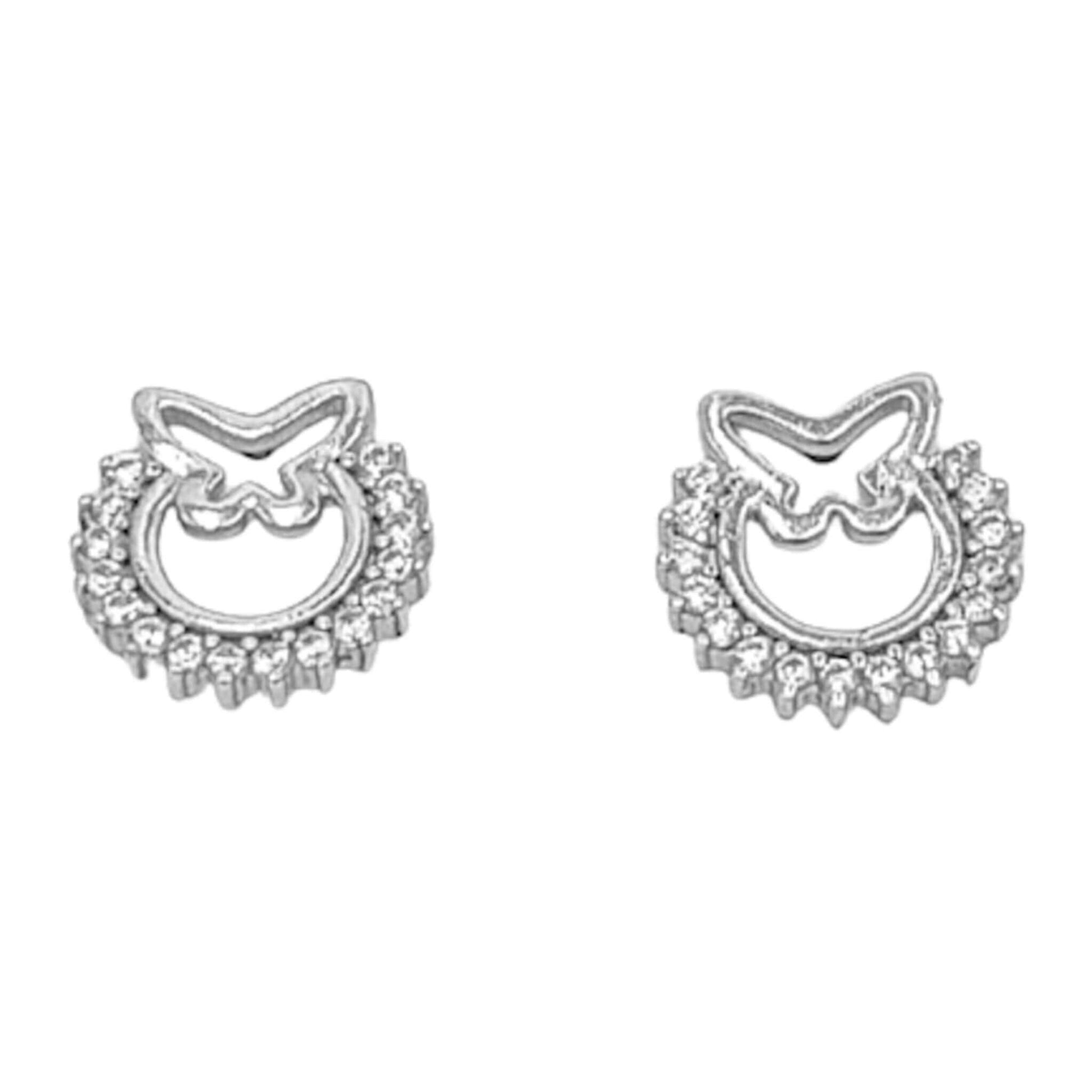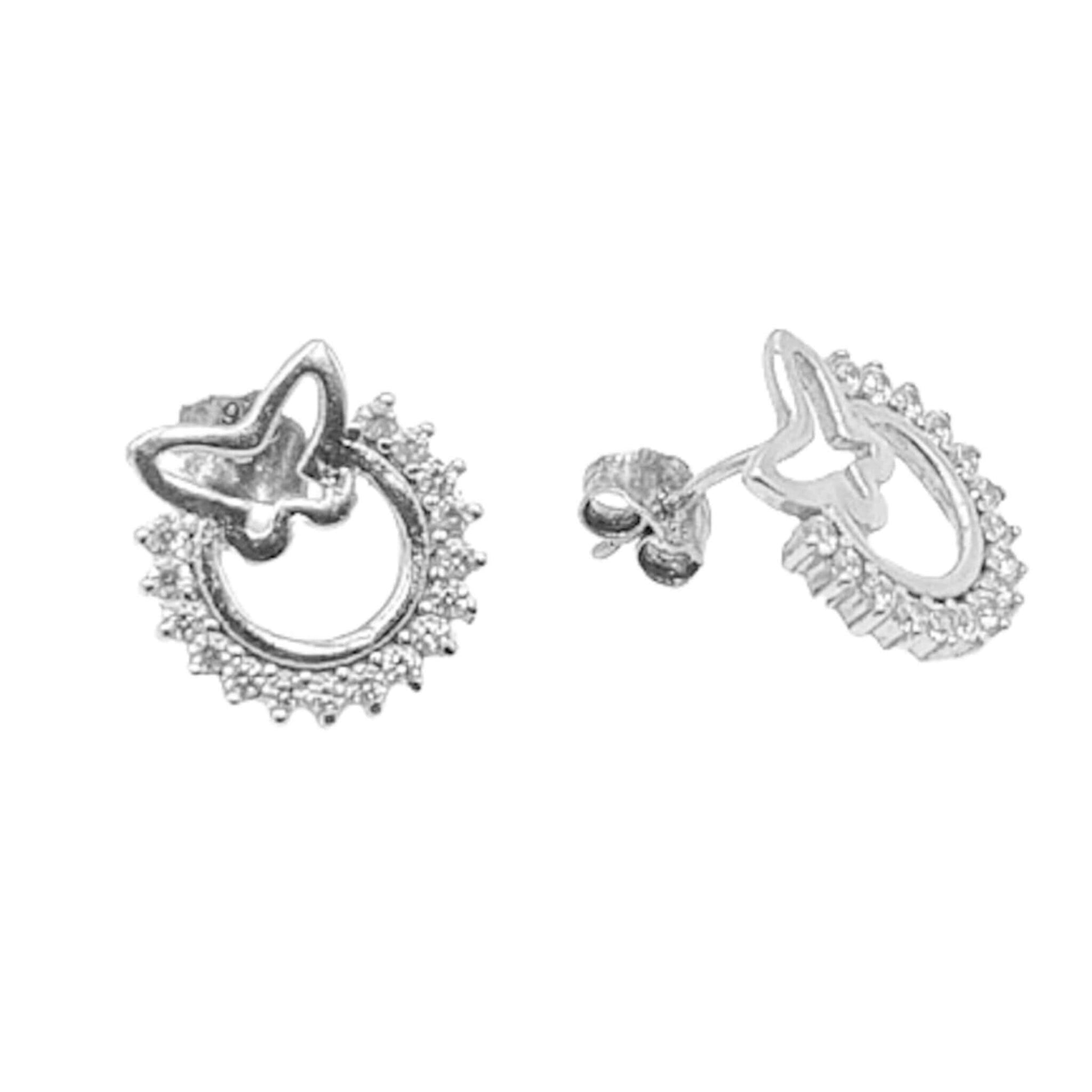 PENDIENTES MARIPOSA PLATA ACABADO RODIO CIRCONITAS CIERRE PRESION
