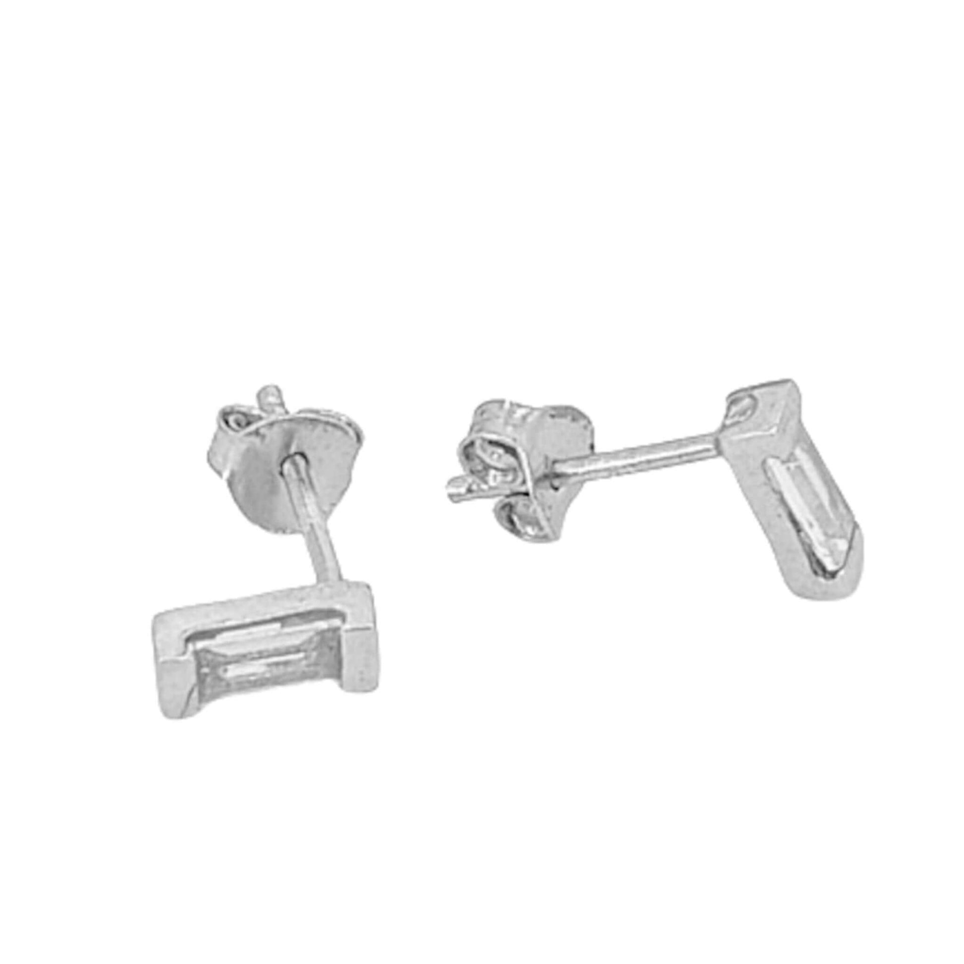 - Diseño: Estos pendientes tienen un largo de 7 mm y presentan una circonita blanca rectangular como pieza central, que aporta un toque de elegancia y modernidad.