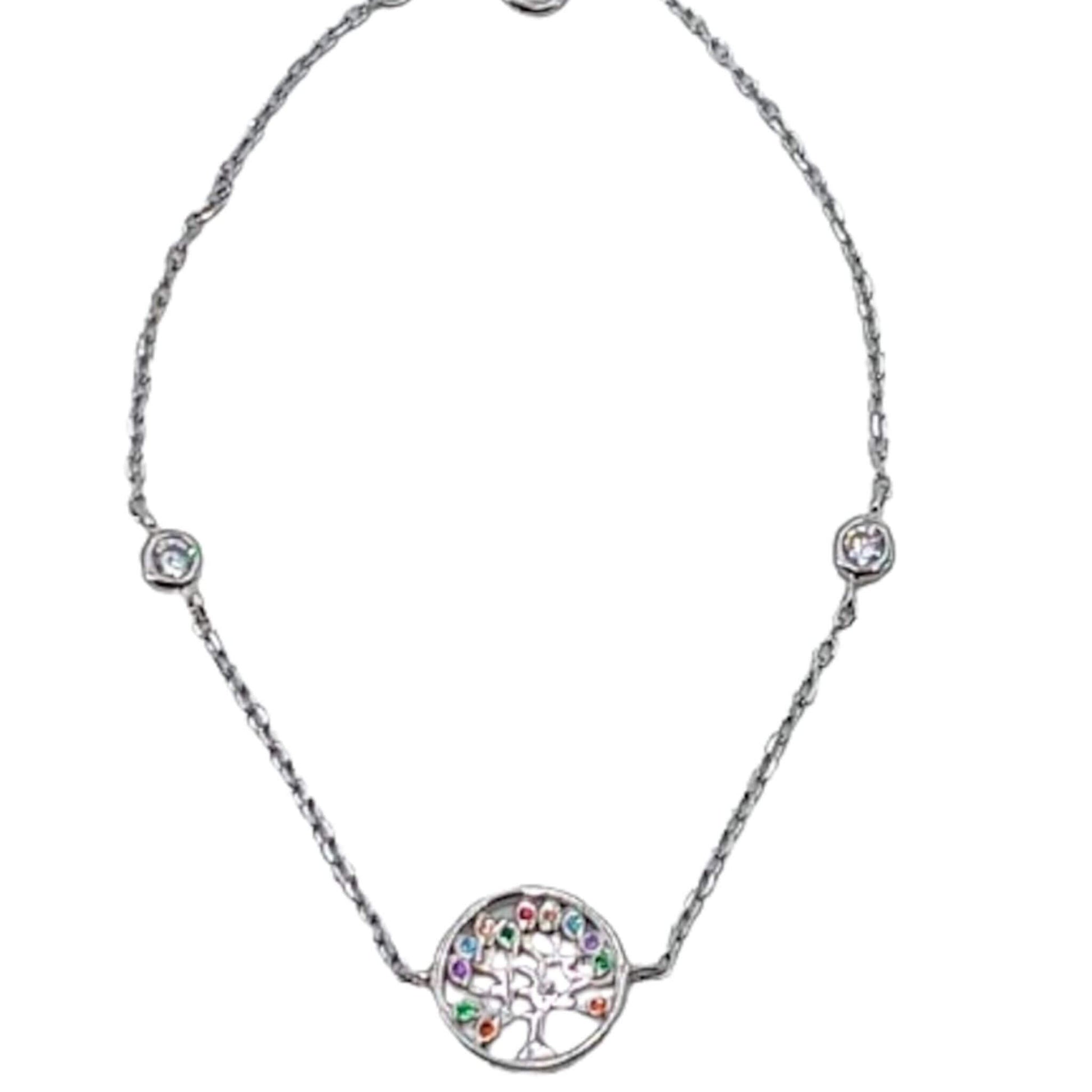 - Diseño: Presenta un colgante del Árbol de la Vida, símbolo de crecimiento y conexión, adornado con circonitas blancas y de colores que agregan un toque de elegancia y estilo.