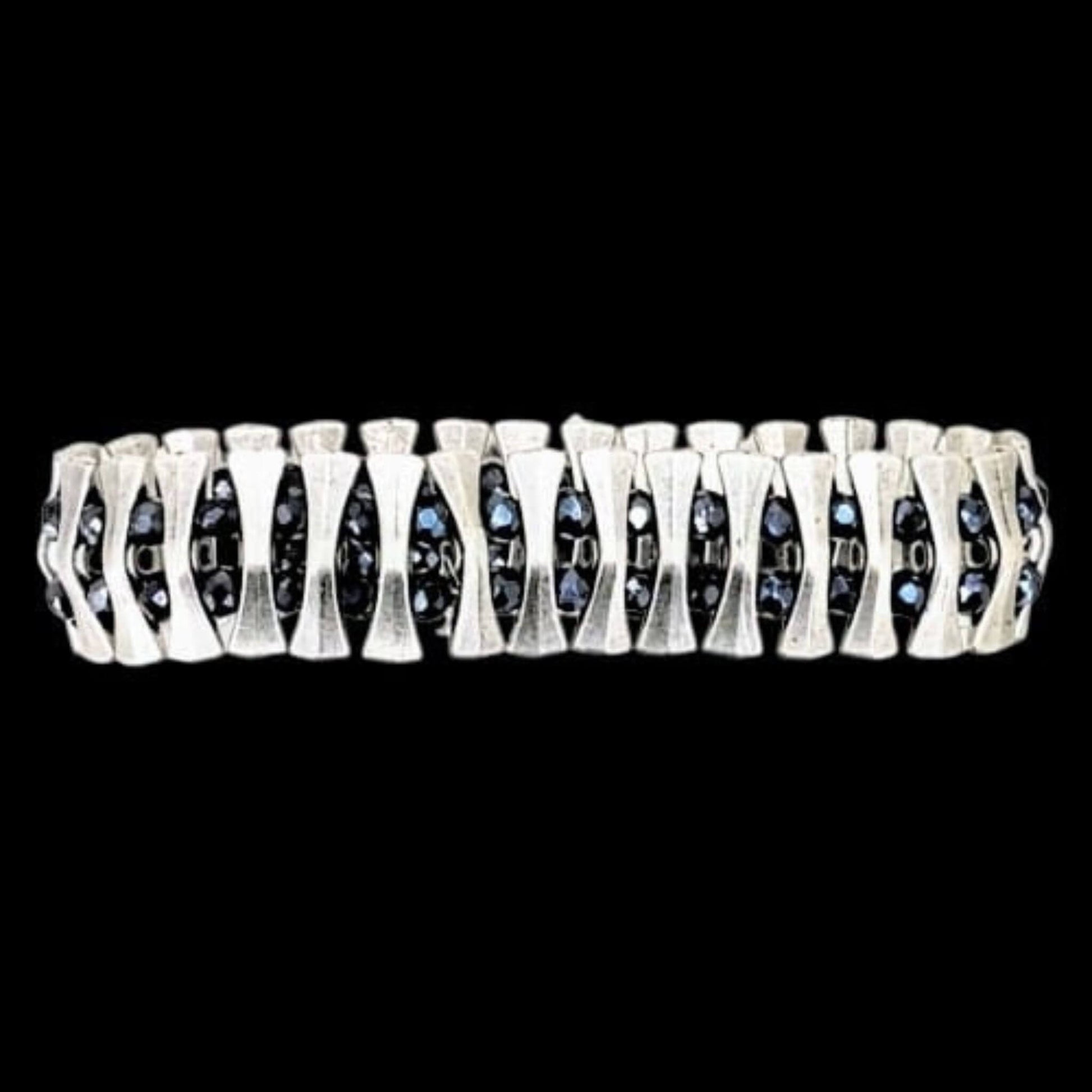 🎯 Brazalete Zamak de nylon elástico con circonitas color incrustadas en elementos ovalados. Moderno y exclusivo - cada circonita captura la luz creando destellos únicos que definen elegancia pura.